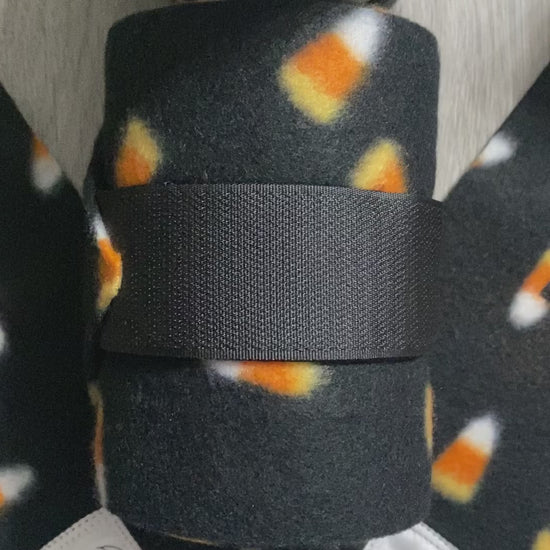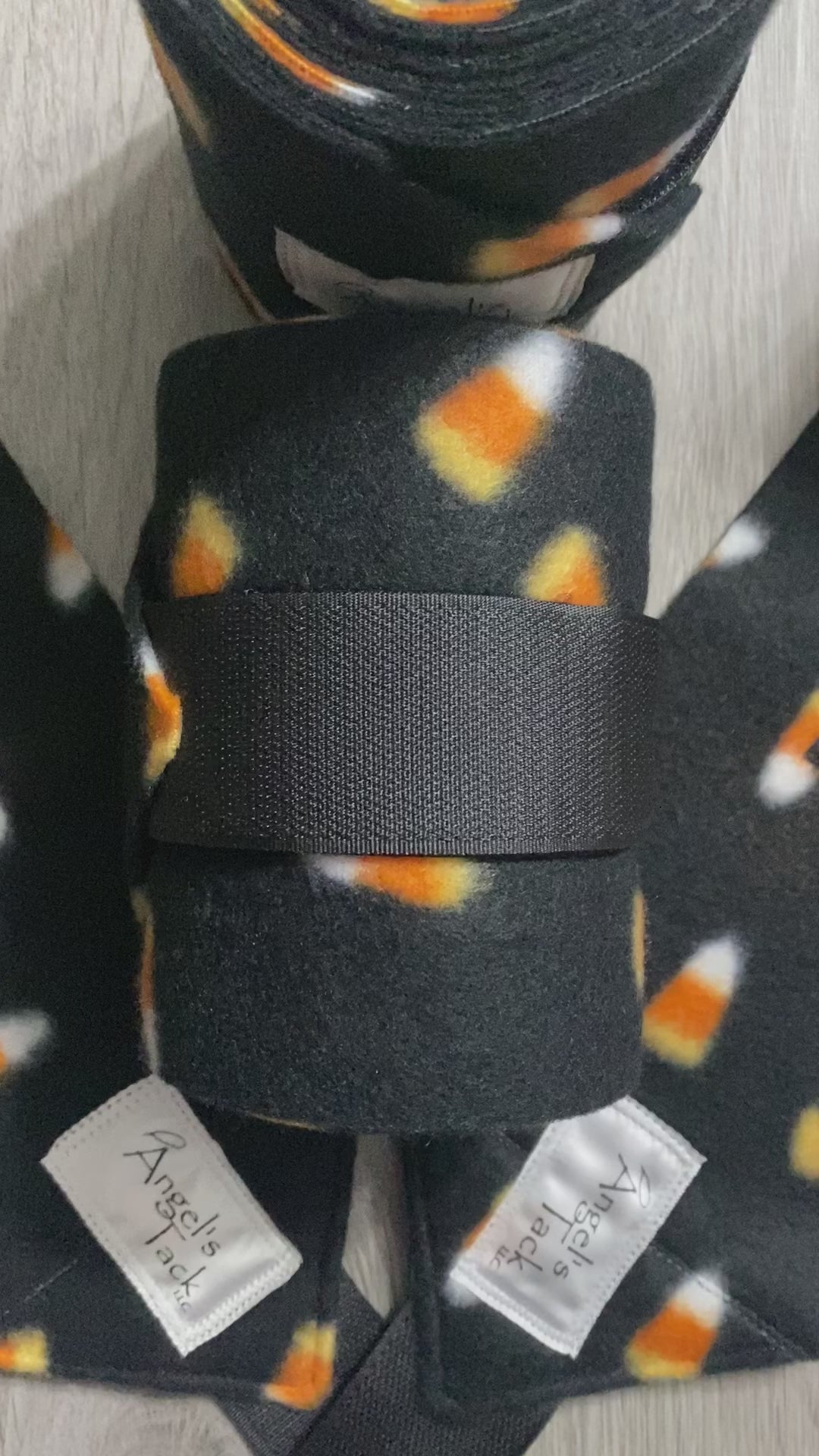 These polo wraps measure 4.5 inches wide by 9ft long. Give your horse added protection while working or trailering. Produced with heavy duty Velcro. Set of four. Handmade in the USA.